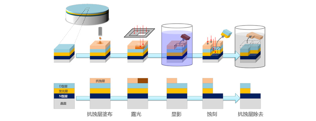 這個過程是制造LED的核心過程。2014年的藍(lán)色LED研究獲得了諾貝爾獎,之所以獲獎是因為經(jīng)此過程,LED的質(zhì)量得到了顯著改善,使得制造實用藍(lán)色LED成為可能。獲獎的原因之一是,正如這里所提到的,通過采用一種稱為雙流法的方法,用兩種原料氣體以供晶體生長,因此制造出更優(yōu)質(zhì)的晶體。此外,p型層的激活,低溫緩沖層等LED的晶體生長膜方法,在許多技術(shù)的積累之上實現(xiàn)了制造出本世紀(jì)的藍(lán)光LED。